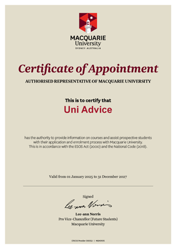 Uni. Advice – Macquarie University Representative AgentScholarship